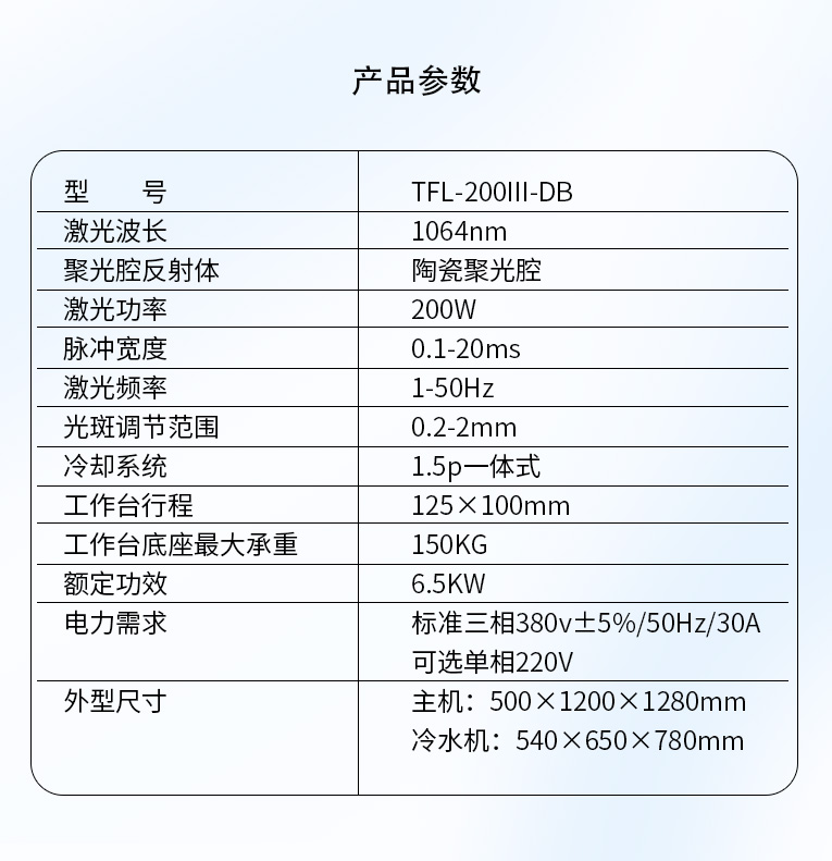 TFL-200Ⅲ-DB型模具激光焊機(jī)是通發(fā)激光公司在TFL-180Ⅲ的基礎(chǔ)進(jìn)行了改良,采用通發(fā)自主研發(fā)的二代精密單燈電源為燈泵浦驅(qū)動(dòng)電源,操作更方便。主機(jī)具備激光頭手搖升降與工作臺(tái)按鈕電動(dòng)升降實(shí)現(xiàn)焊接不同厚度模具的激光焊加工。本款機(jī)型更適用于各類高精密注塑模具激光補(bǔ)焊,精密塑膠模具零件激光修補(bǔ),塑膠模具鈹銅零件激光燒焊;可對(duì)模具使用過程中出現(xiàn)的磨損進(jìn)行激光修復(fù);對(duì)機(jī)械加工失誤、電火花加工失誤,模具減膠設(shè)計(jì)變更等需要對(duì)模具修改,起到關(guān)鍵的作用,可彌補(bǔ)應(yīng)加工失誤造成的巨大損失。